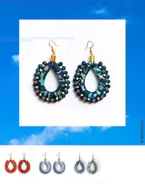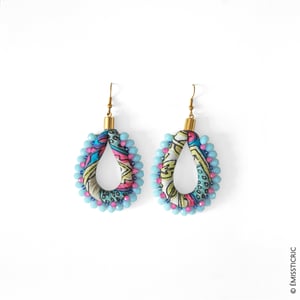 - Lavanda : tissu Batik 100% coton, métal doré, perles Swarovski, en Cristal et Miyuki.